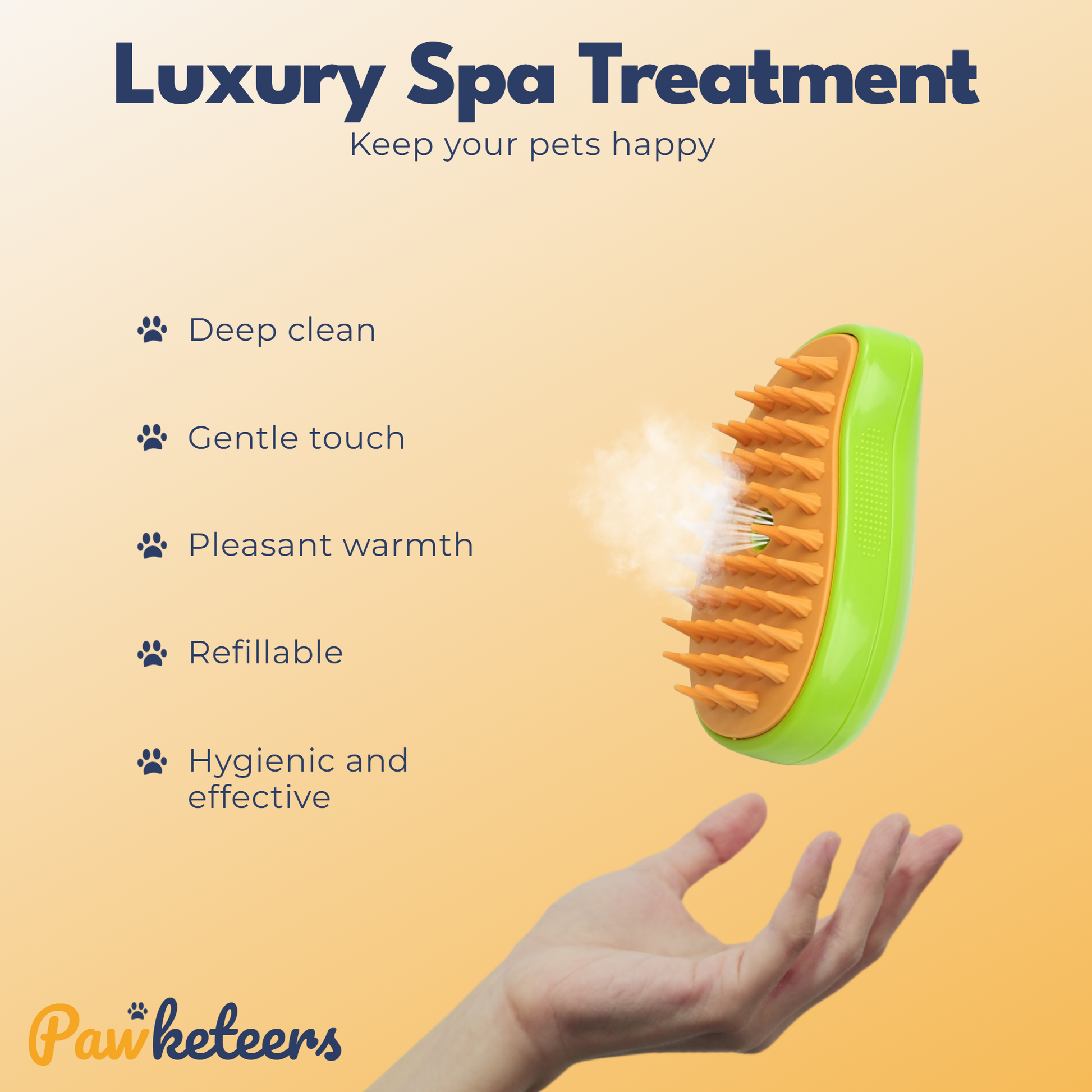 Glide the brush slowly through your pet’s fur, following the natural direction of hair growth. The soft steam loosens dirt and detangles without pulling, while the warm mist relaxes your pet.